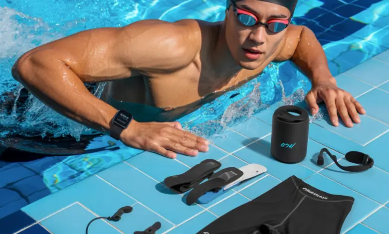 For workouts that allow music, waterproof earbuds or a shower-safe speaker add motivation. Choose sweat-resistant tech with secure fit for use during dryland sessions or warm-ups.