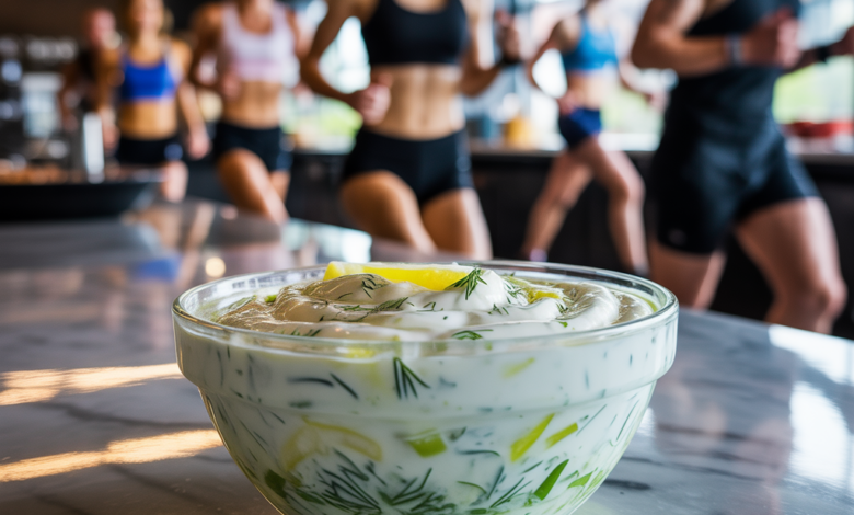 - After strength training, pair grilled salmon or chicken with a generous drizzle of dill garlic sauce and a side of sweet potato. The yogurt offers protein while the carbs replenish glycogen.