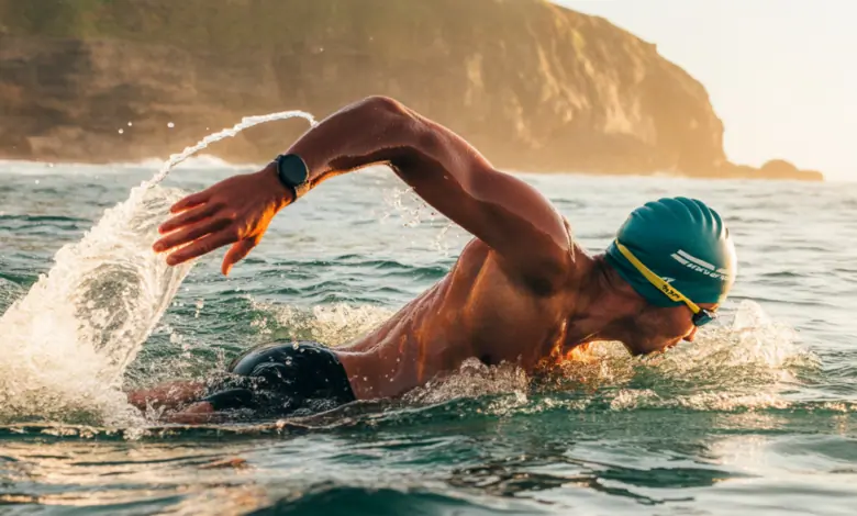 - Open-water session: 20–30 minutes continuous swim practicing sighting every 6–8 strokes